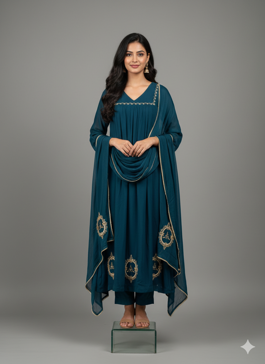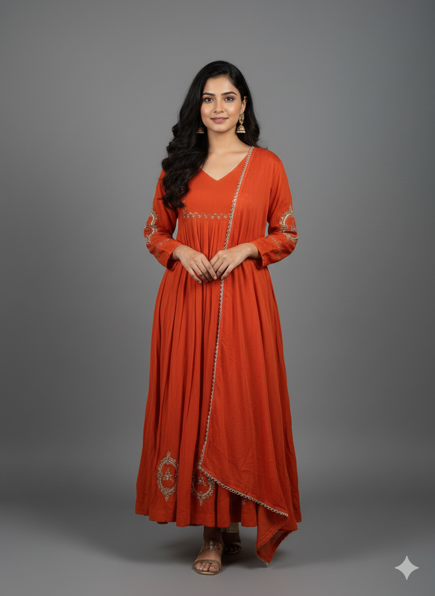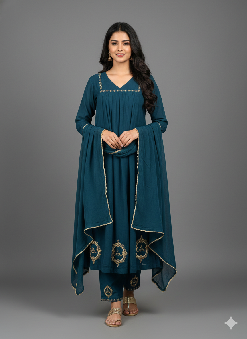Elevate your ethnic wardrobe with our stunning 3-Piece Flair Set, designed to bring elegance, comfort, and vibrant style to every occasion. This beautiful set includes a flairy kurta, matching bottom, and a graceful dupatta, crafted to create a timeless festive look.