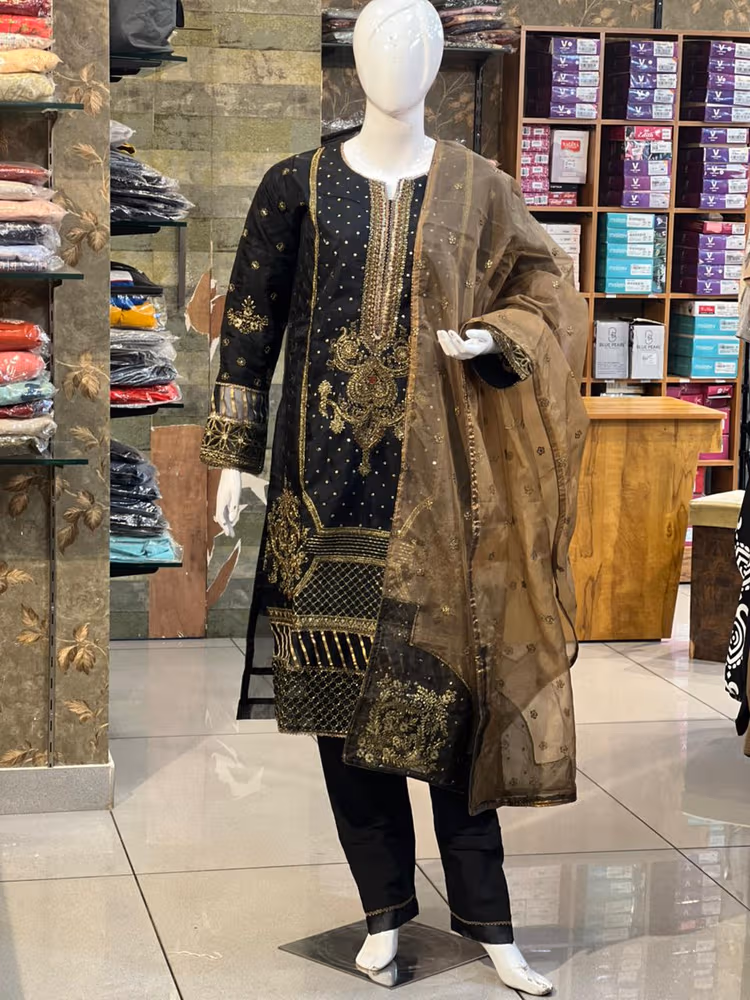 Black 3 Piece Pakistani Salwar Set